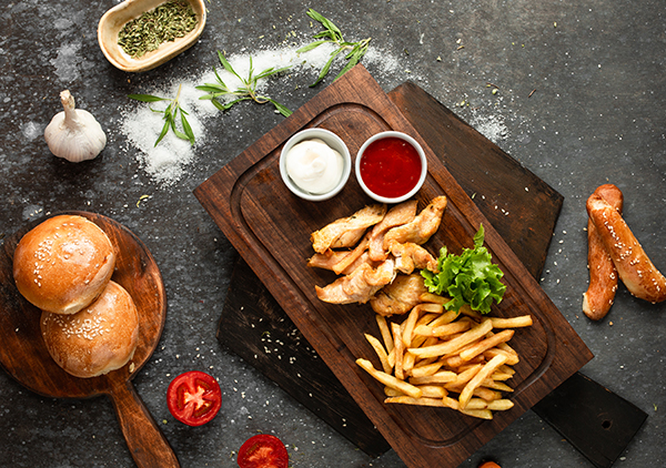 6.50 €5 Stück zartes Hähnchenfilet im knusprigen Mantel, fein gewürzt – außen kross, innen saftig.
